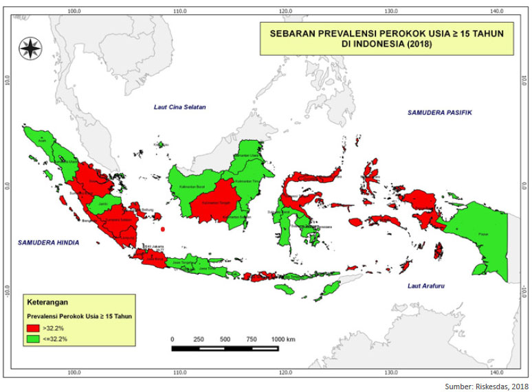 Sebaran Prevalensi Perokok Usia >=15 Tahun Di Indonesia Tahun 2018