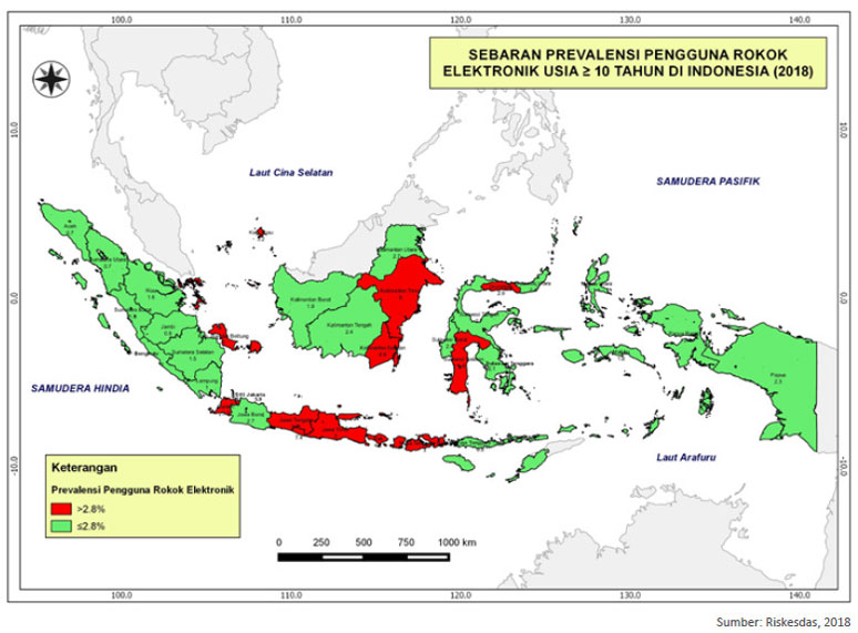 Sebaran Prevalensi Pengguna Rokok Elektronik Usia >=10 Tahun Di Indonesia Tahun 2018