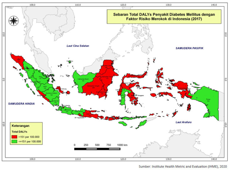 Sebaran Total DALYs Penyakit Diabetes Melitus dengan Faktor Risiko Merokok Di Indonesia Tahun 2017