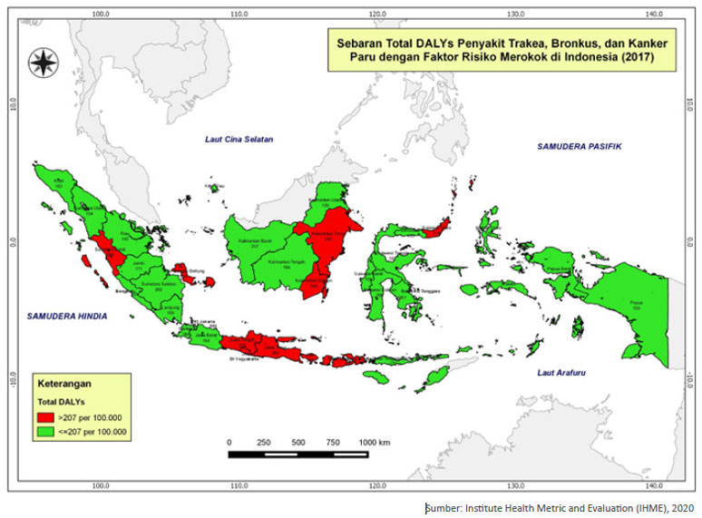 Sebaran Total DALYs Penyakit Trakea, Bronkus, dan Kanker Paru dengan Faktor Risiko Merokok Di Indonesia Tahun 2017